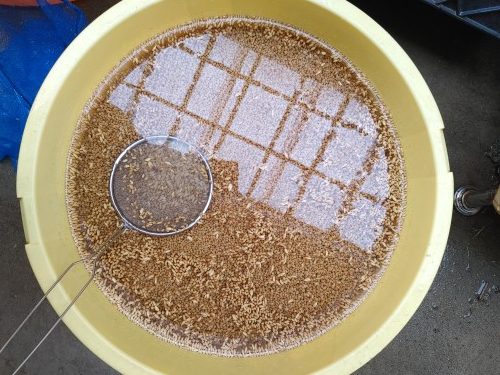 塩水に浸けると実が充実していない軽い籾種が浮くので選別できます