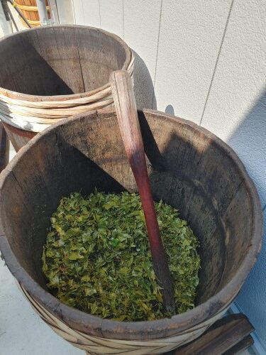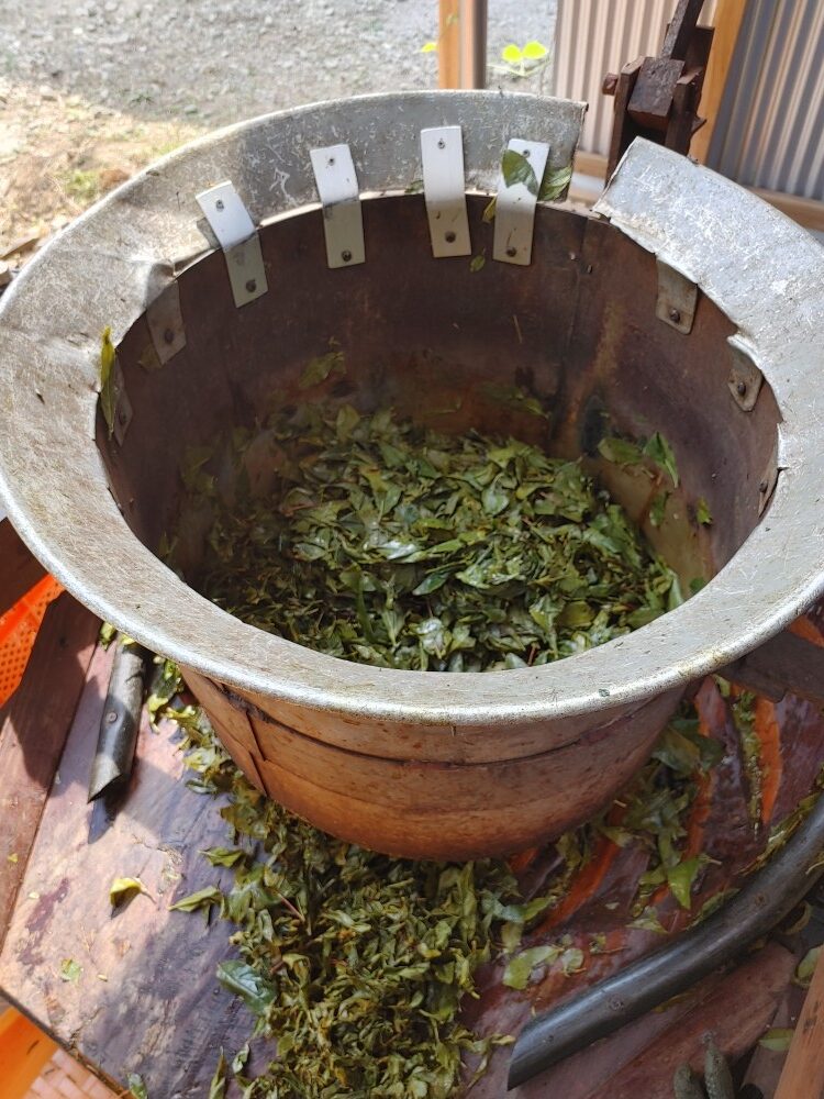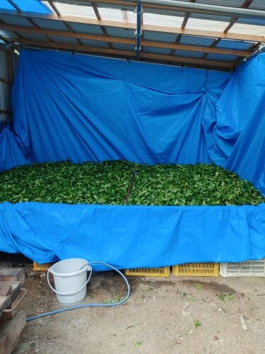 葉をクシャクシャにして発酵しやすくします
