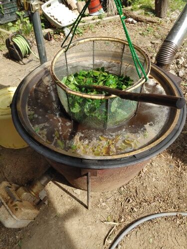 お茶の葉を茹でます